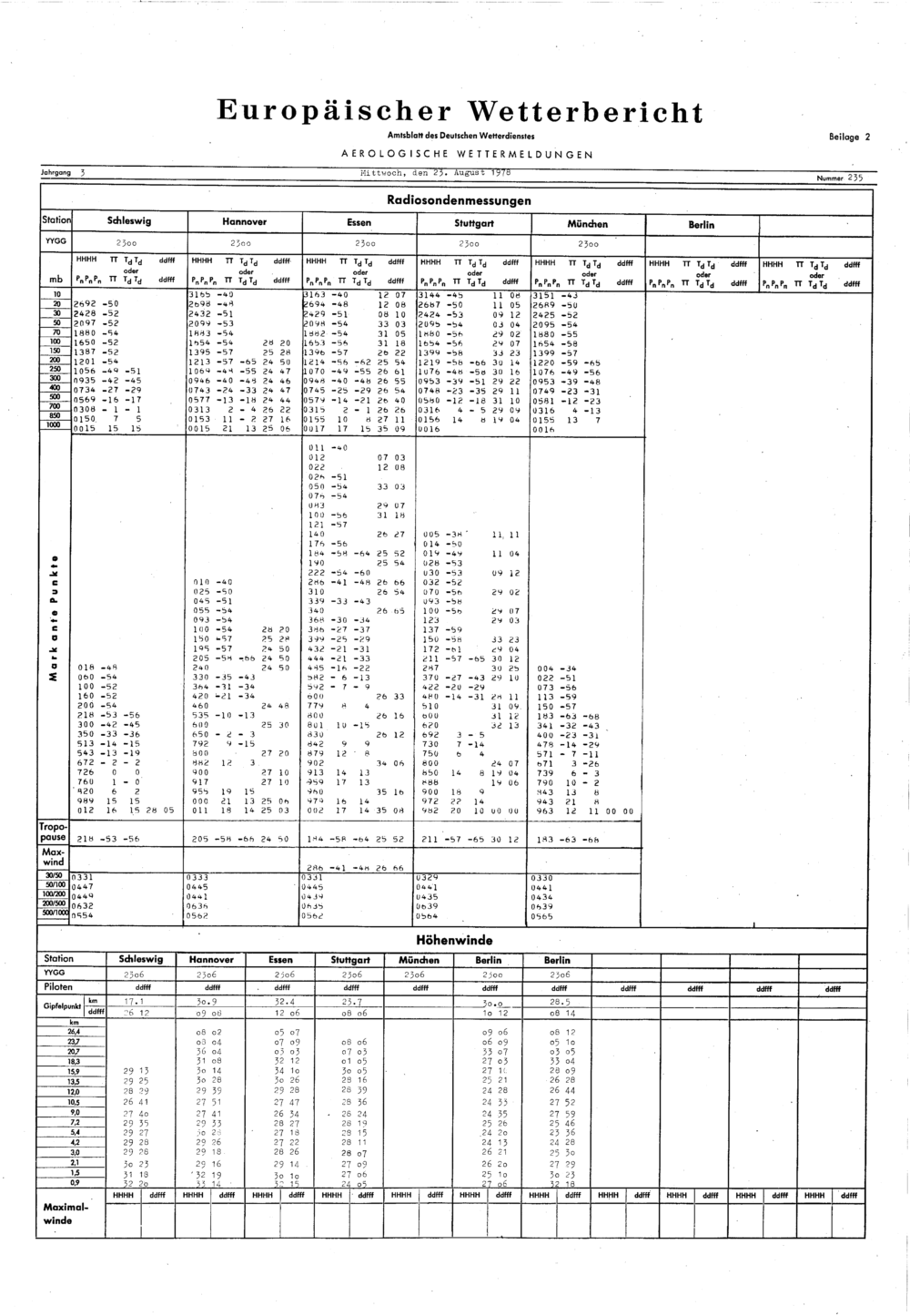 Europäischer Wetterbericht. Beilage 1, Bodenwettermeldungen. 1976-1994