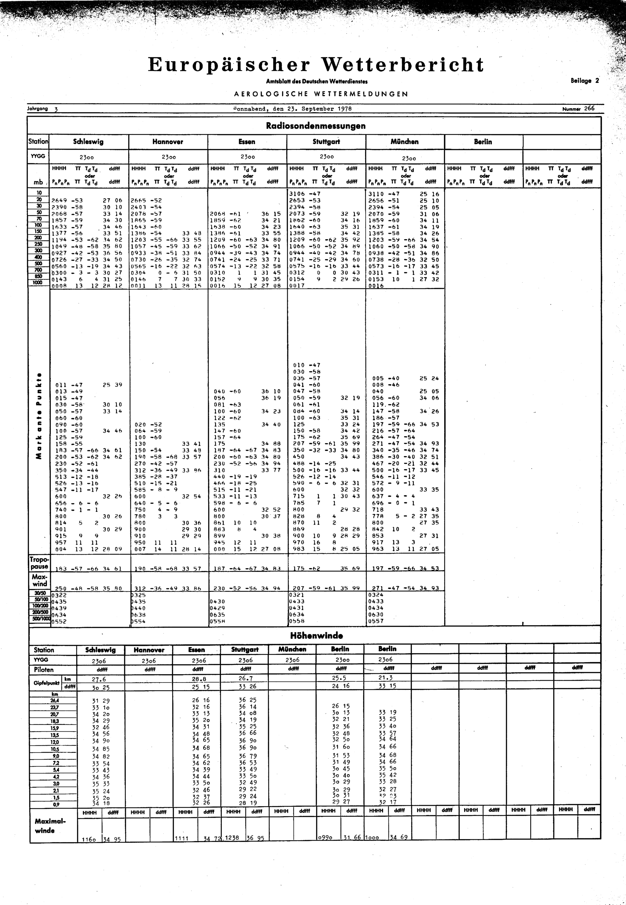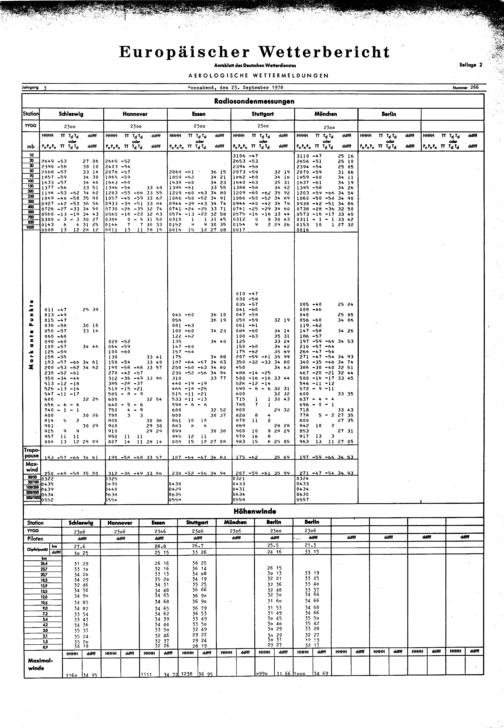 Europäischer Wetterbericht. Beilage 1, Bodenwettermeldungen. 1976-1994