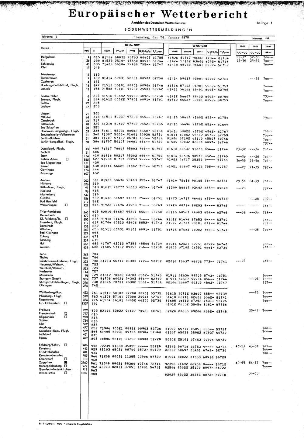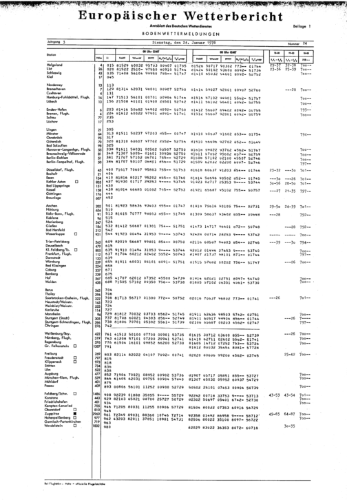 Europäischer Wetterbericht. Beilage 1, Bodenwettermeldungen. 1976-1994