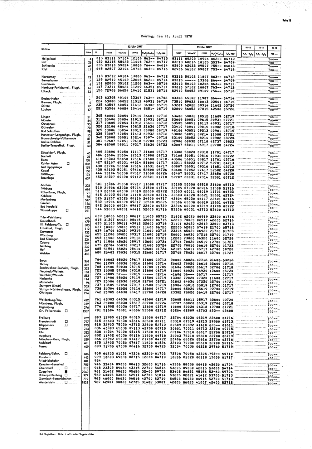 Europäischer Wetterbericht. Beilage 1, Bodenwettermeldungen. 1976-1994