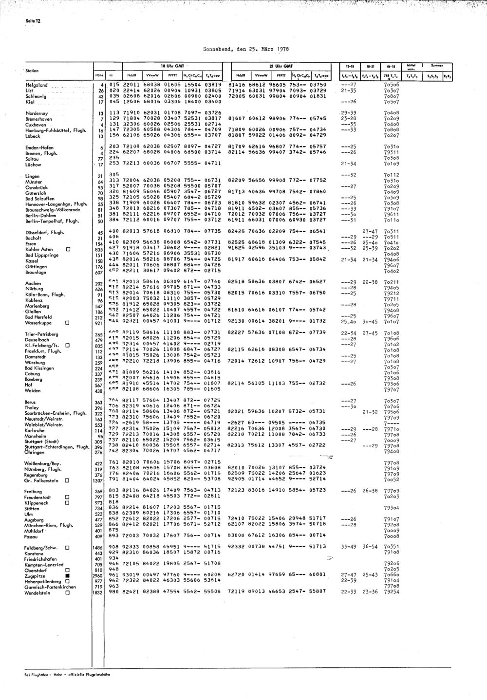 Europäischer Wetterbericht. Beilage 1, Bodenwettermeldungen. 1976-1994