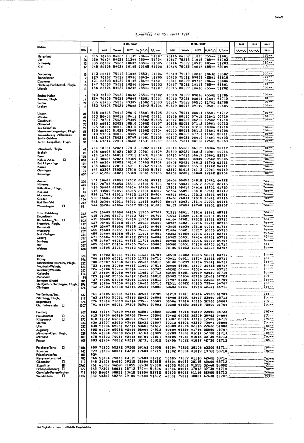 Europäischer Wetterbericht. Beilage 1, Bodenwettermeldungen. 1976-1994