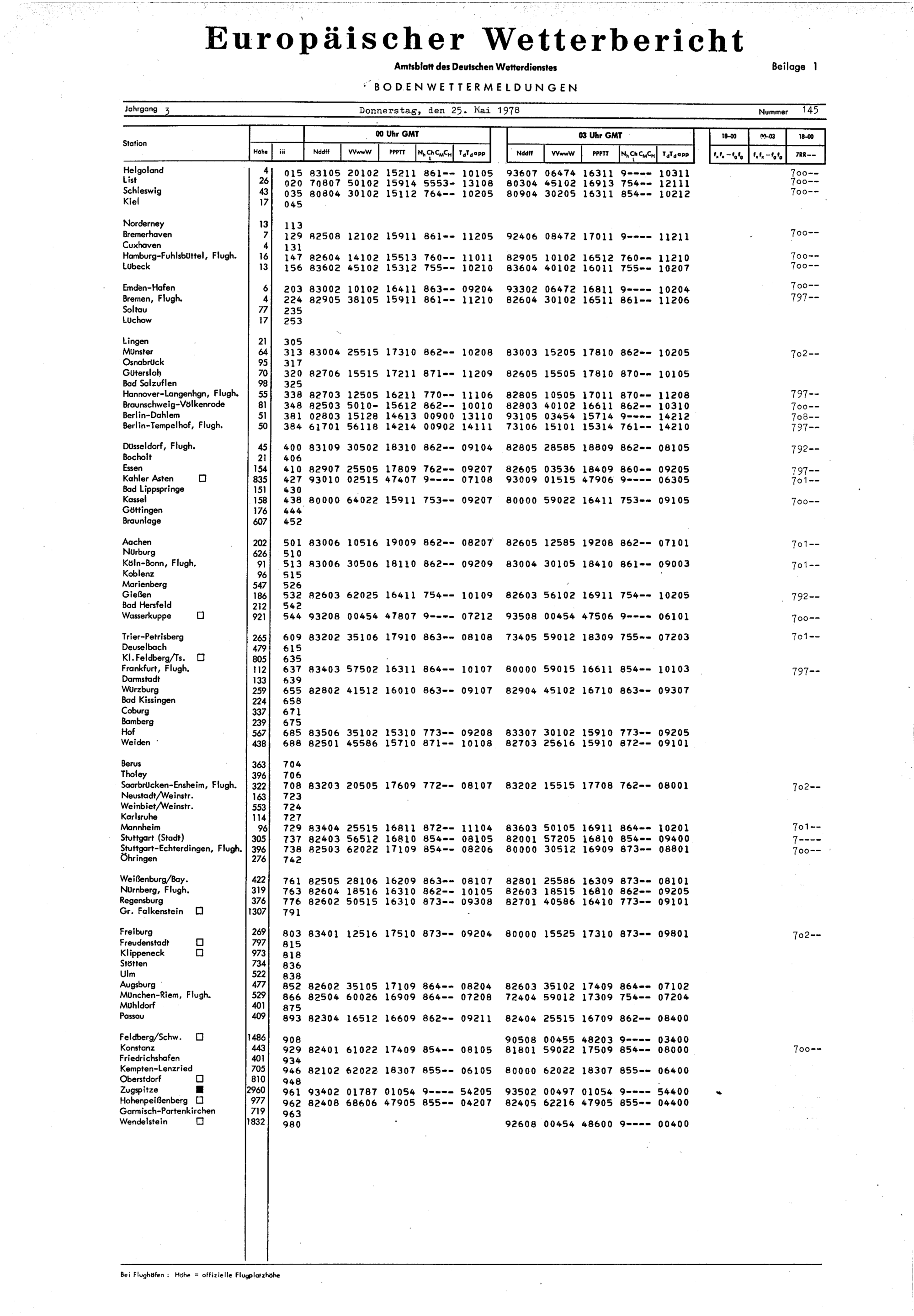 Europäischer Wetterbericht. Beilage 1, Bodenwettermeldungen. 1976-1994