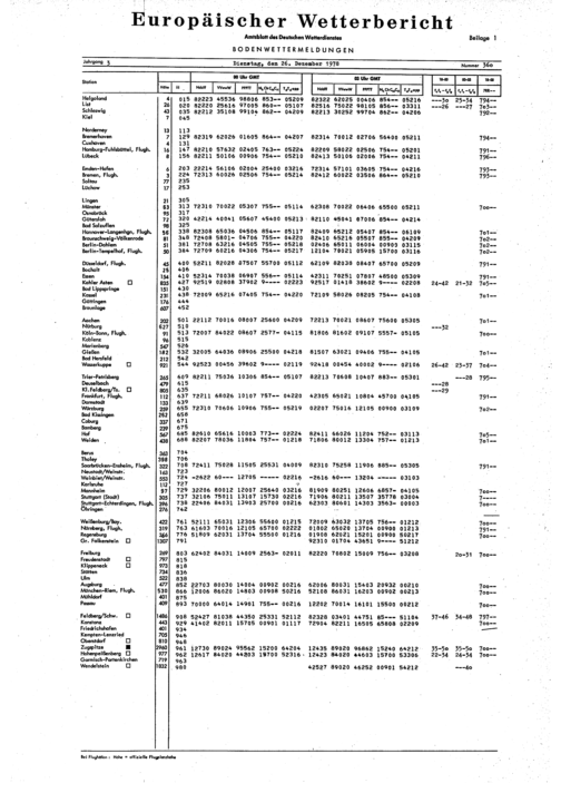 Europäischer Wetterbericht. Beilage 1, Bodenwettermeldungen. 1976-1994
