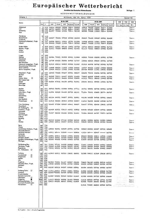 Europäischer Wetterbericht. Beilage 1, Bodenwettermeldungen. 1976-1994