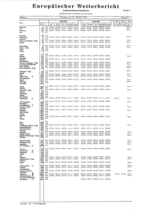 Europäischer Wetterbericht. Beilage 1, Bodenwettermeldungen. 1976-1994