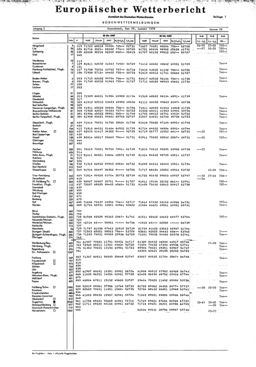 Europäischer Wetterbericht. Beilage 1, Bodenwettermeldungen. 1976-1994
