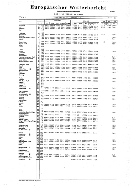 Europäischer Wetterbericht. Beilage 1, Bodenwettermeldungen. 1976-1994
