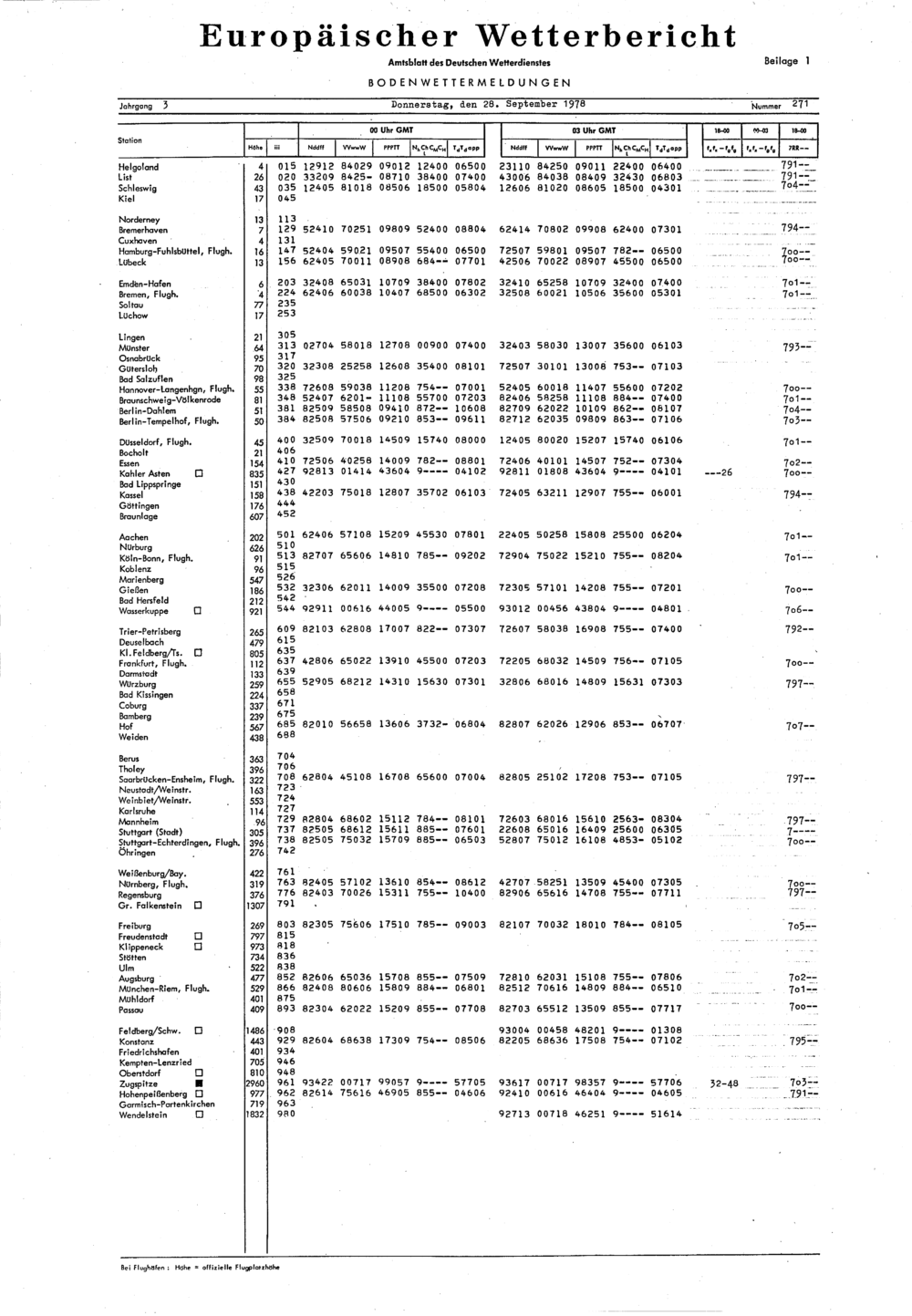 Europäischer Wetterbericht. Beilage 1, Bodenwettermeldungen. 1976-1994