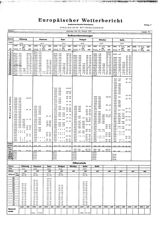 Europäischer Wetterbericht. Beilage 1, Bodenwettermeldungen. 1976-1994