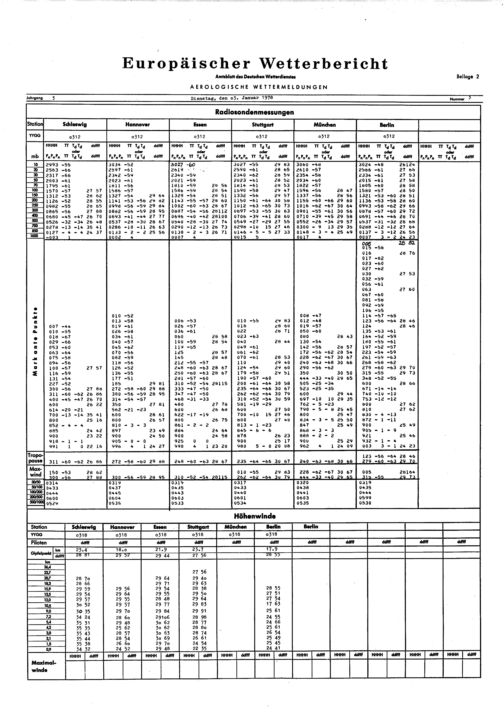 Europäischer Wetterbericht. Beilage 1, Bodenwettermeldungen. 1976-1994