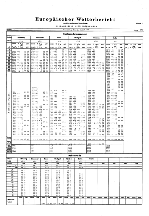 Europäischer Wetterbericht. Beilage 1, Bodenwettermeldungen. 1976-1994