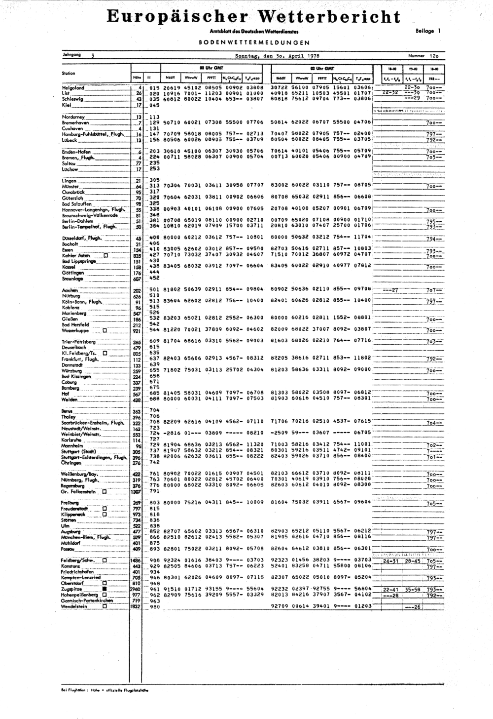 Europäischer Wetterbericht. Beilage 1, Bodenwettermeldungen. 1976-1994