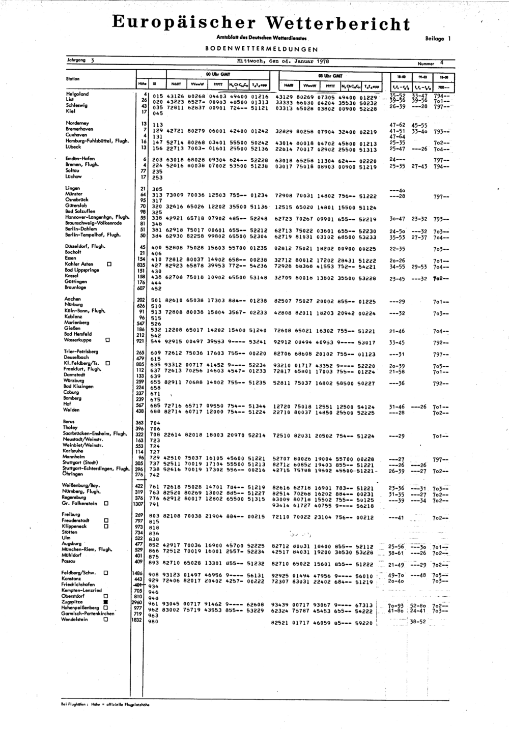 Europäischer Wetterbericht. Beilage 1, Bodenwettermeldungen. 1976-1994