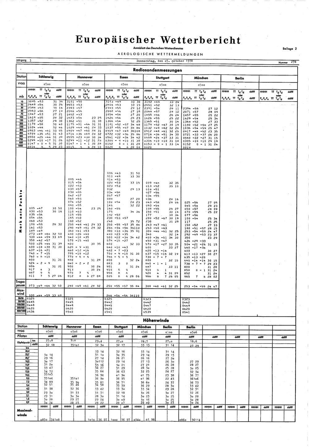 Europäischer Wetterbericht. Beilage 1, Bodenwettermeldungen. 1976-1994