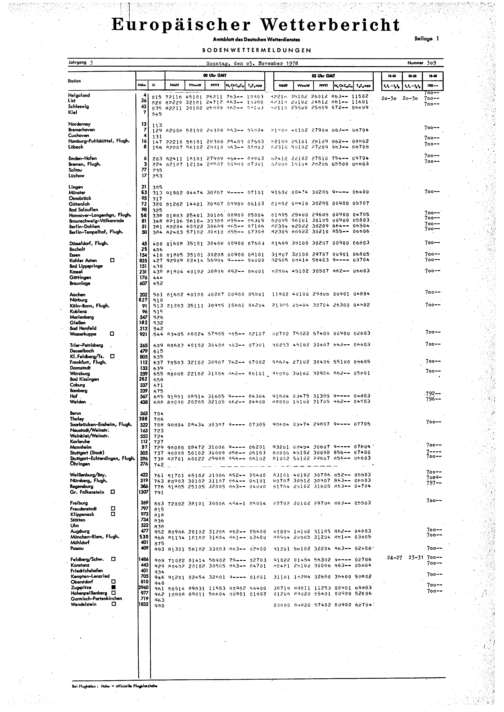 Europäischer Wetterbericht. Beilage 1, Bodenwettermeldungen. 1976-1994