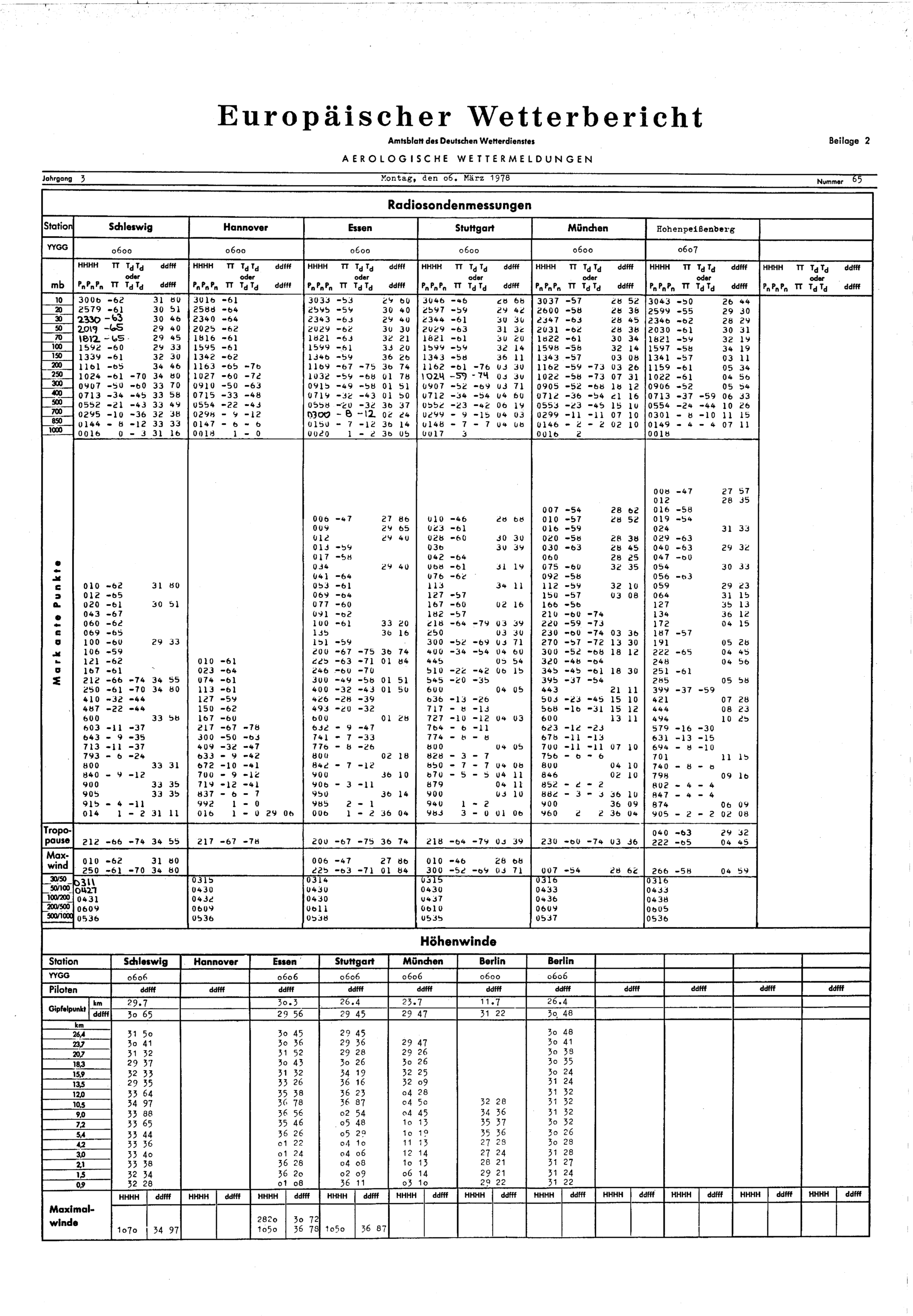 Europäischer Wetterbericht. Beilage 1, Bodenwettermeldungen. 1976-1994