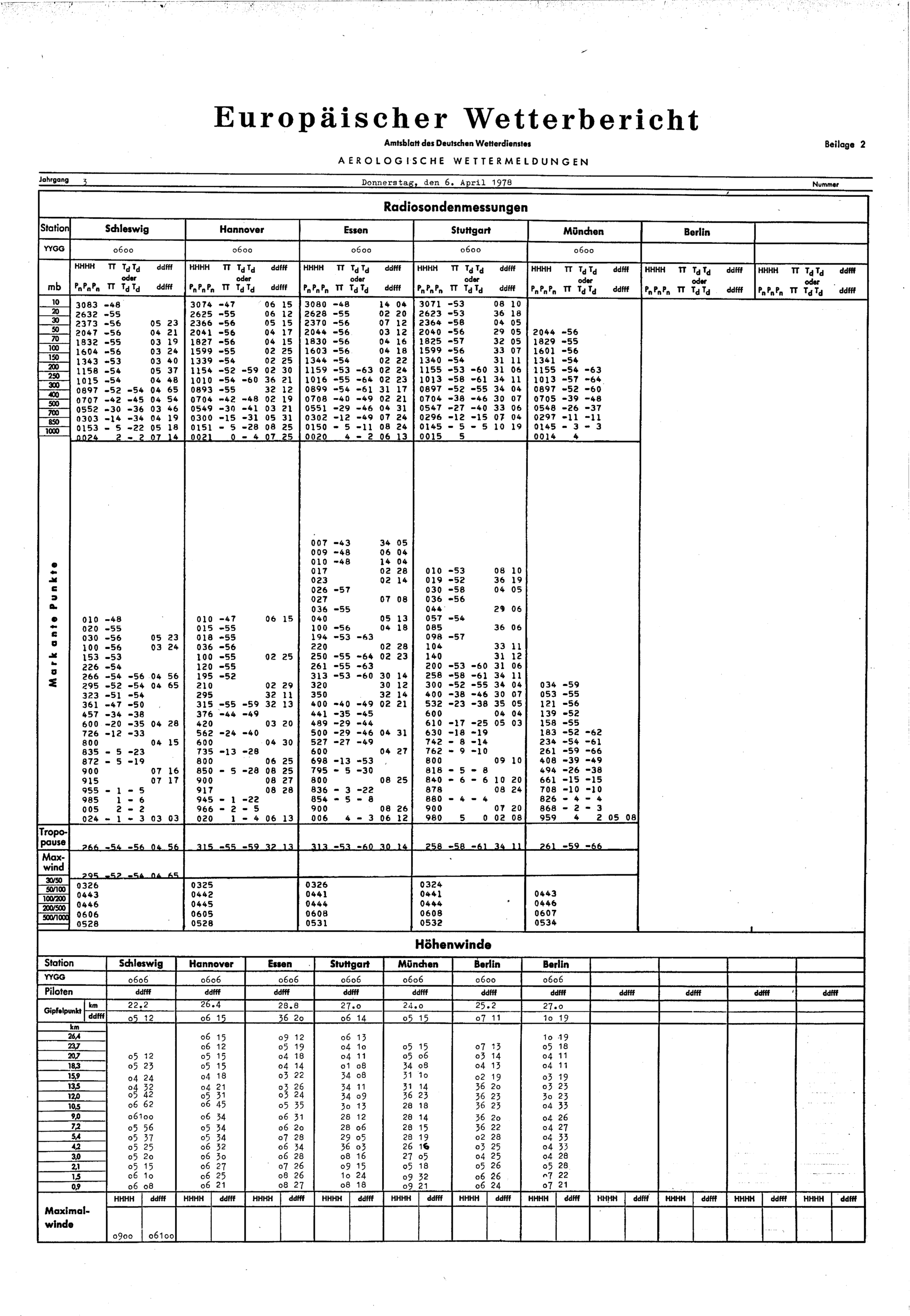 Europäischer Wetterbericht. Beilage 1, Bodenwettermeldungen. 1976-1994