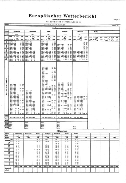 Europäischer Wetterbericht. Beilage 1, Bodenwettermeldungen. 1976-1994