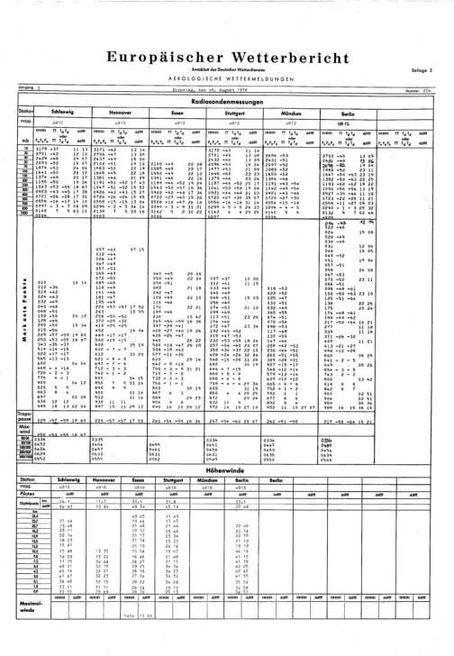 Europäischer Wetterbericht. Beilage 1, Bodenwettermeldungen. 1976-1994