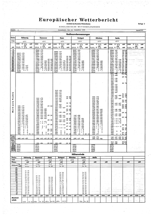 Europäischer Wetterbericht. Beilage 1, Bodenwettermeldungen. 1976-1994