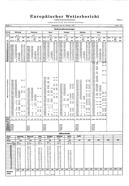 Europäischer Wetterbericht. Beilage 1, Bodenwettermeldungen. 1976-1994
