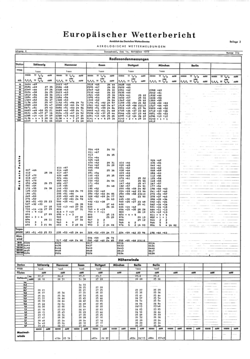 Europäischer Wetterbericht. Beilage 1, Bodenwettermeldungen. 1976-1994
