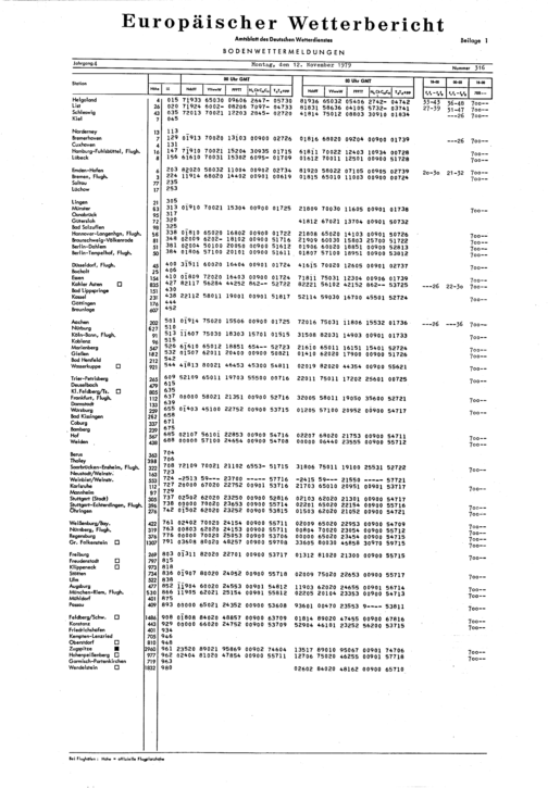 Europäischer Wetterbericht. Beilage 1, Bodenwettermeldungen. 1976-1994