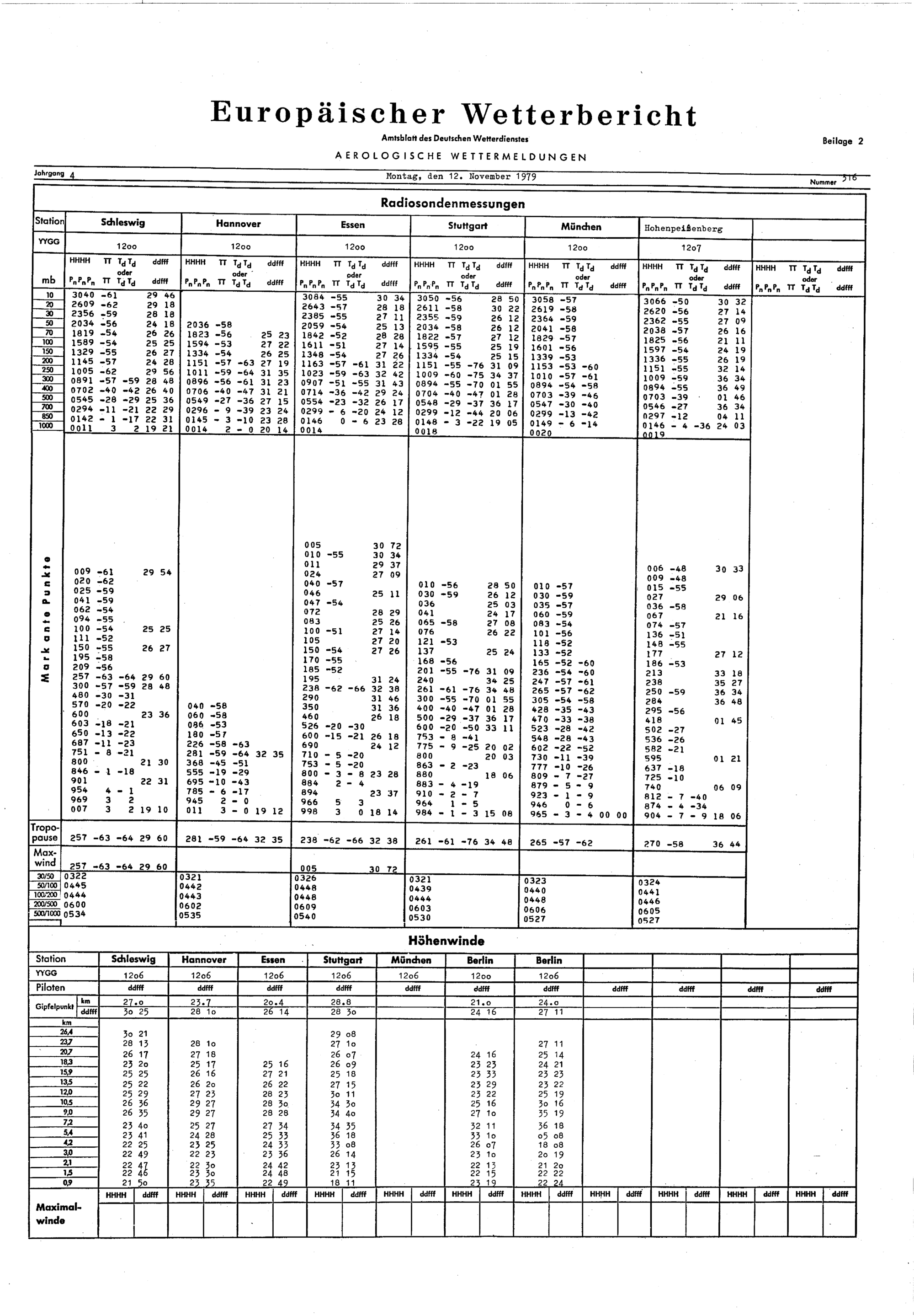 Europäischer Wetterbericht. Beilage 1, Bodenwettermeldungen. 1976-1994