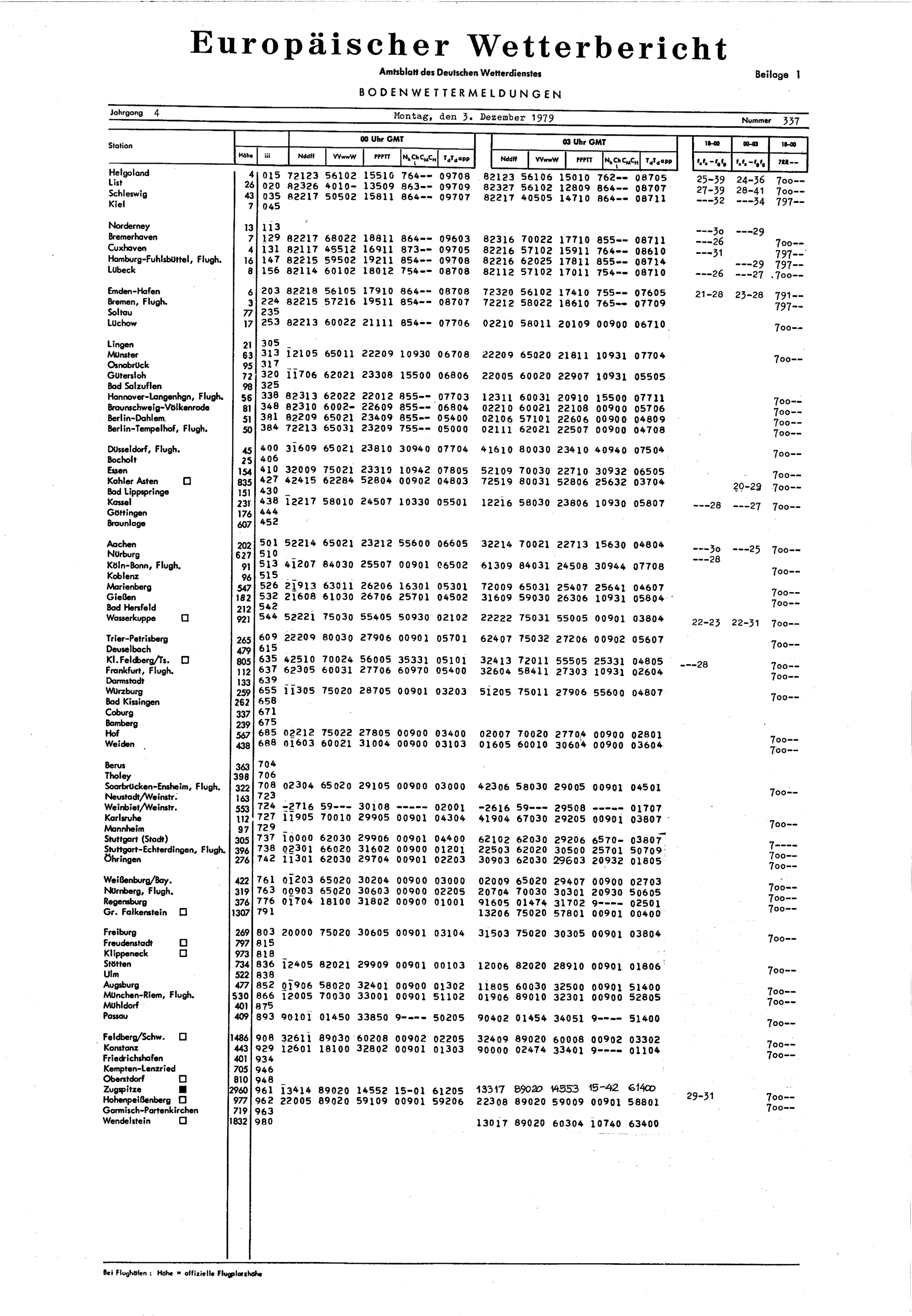 Europäischer Wetterbericht. Beilage 1, Bodenwettermeldungen. 1976-1994