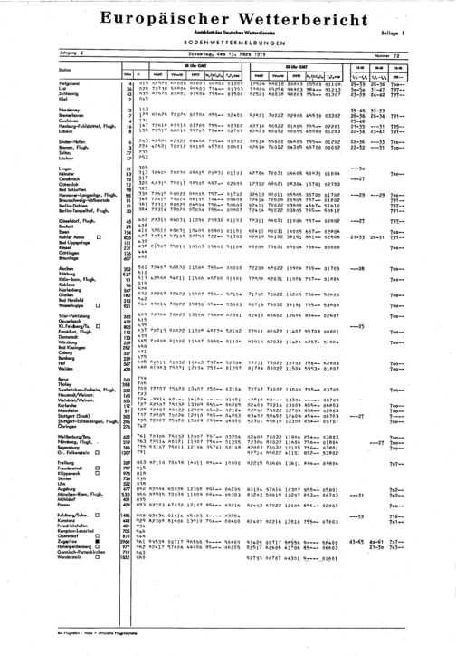Europäischer Wetterbericht. Beilage 1, Bodenwettermeldungen. 1976-1994