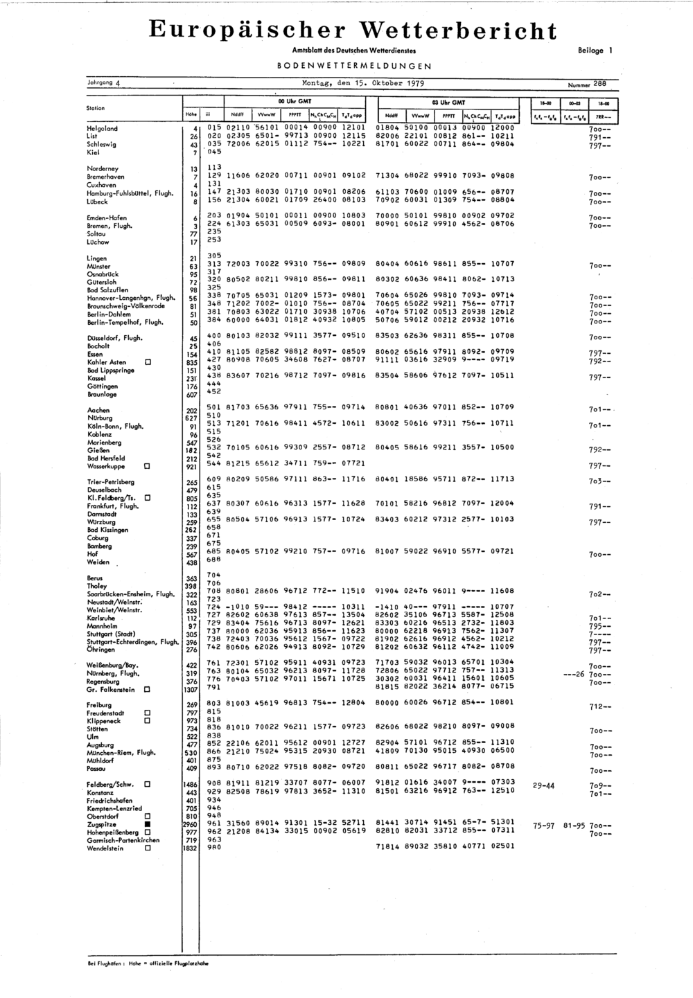 Europäischer Wetterbericht. Beilage 1, Bodenwettermeldungen. 1976-1994