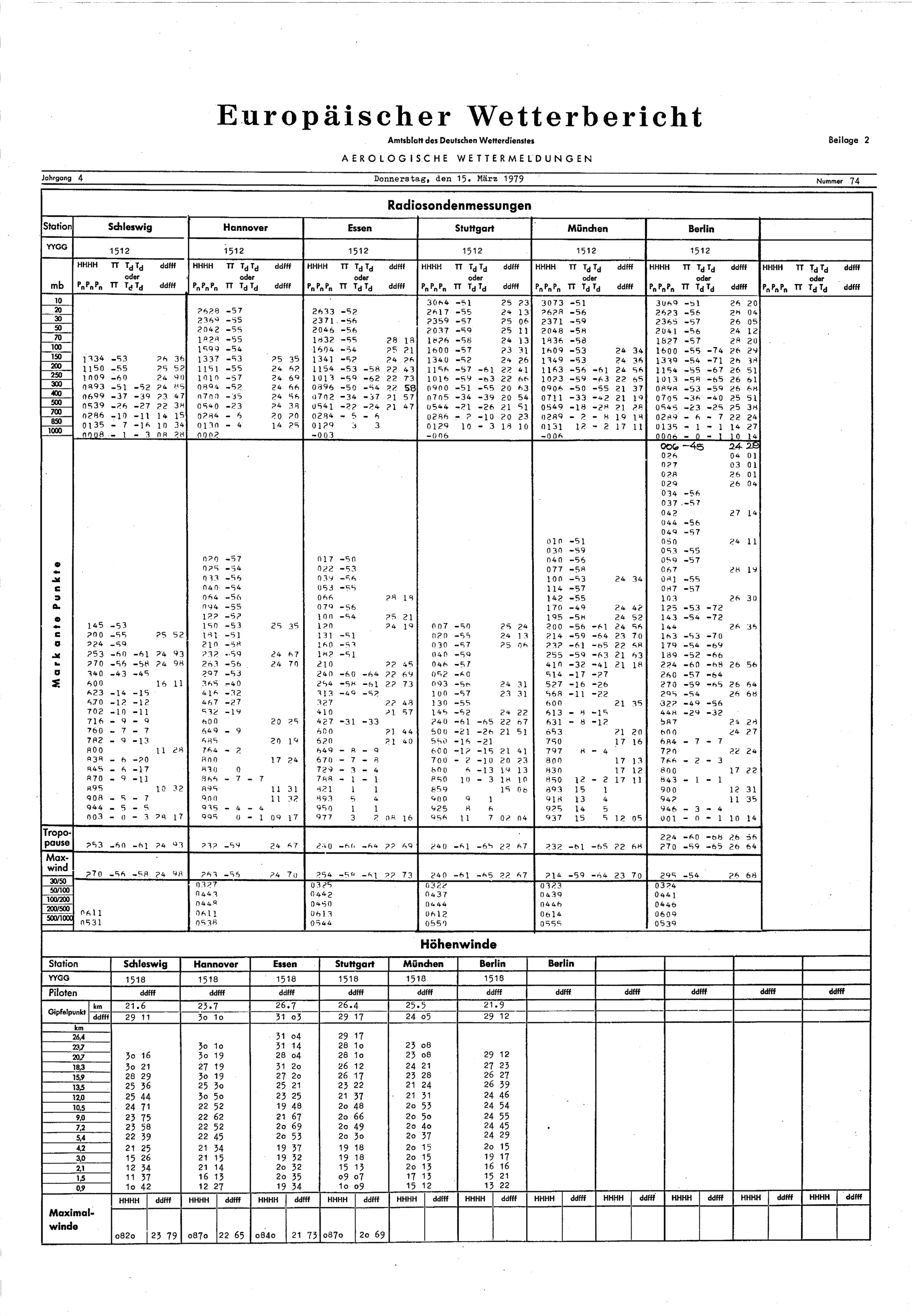 Europäischer Wetterbericht. Beilage 1, Bodenwettermeldungen. 1976-1994