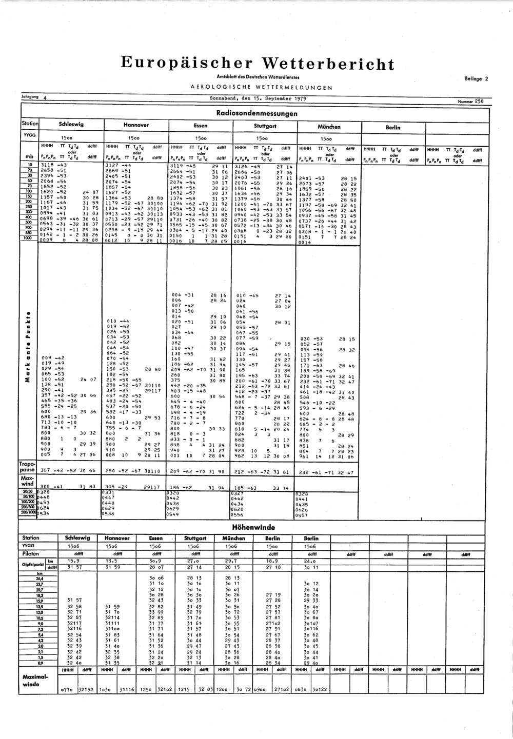 Europäischer Wetterbericht. Beilage 1, Bodenwettermeldungen. 1976-1994