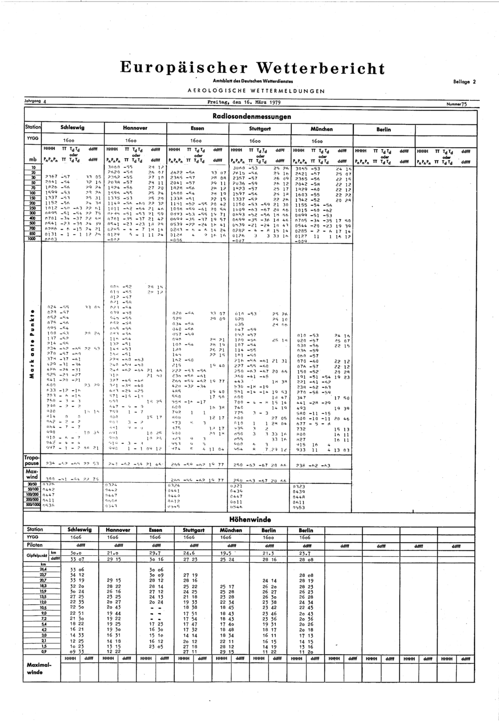 Europäischer Wetterbericht. Beilage 1, Bodenwettermeldungen. 1976-1994