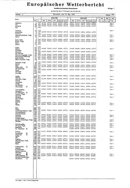 Europäischer Wetterbericht. Beilage 1, Bodenwettermeldungen. 1976-1994
