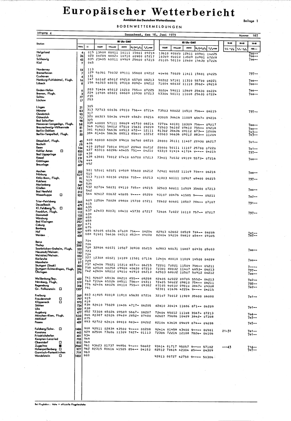 Europäischer Wetterbericht. Beilage 1, Bodenwettermeldungen. 1976-1994