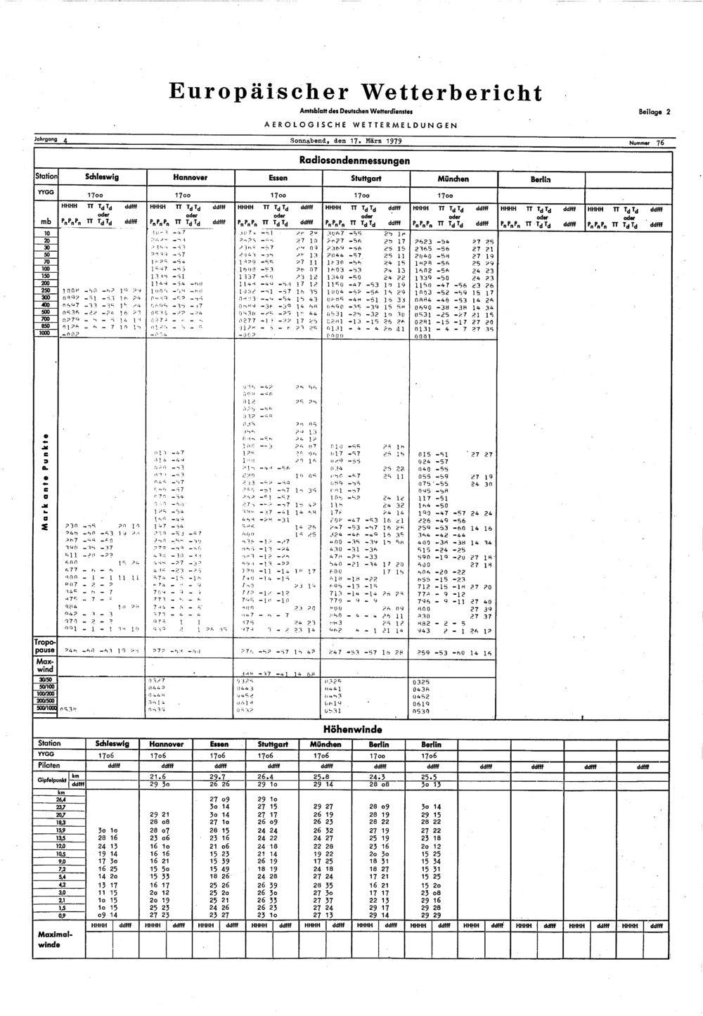 Europäischer Wetterbericht. Beilage 1, Bodenwettermeldungen. 1976-1994