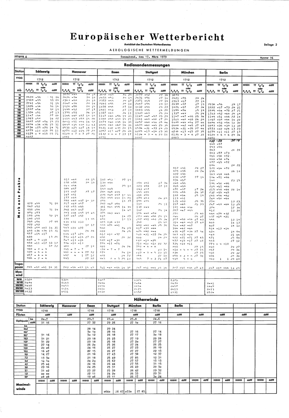 Europäischer Wetterbericht. Beilage 1, Bodenwettermeldungen. 1976-1994