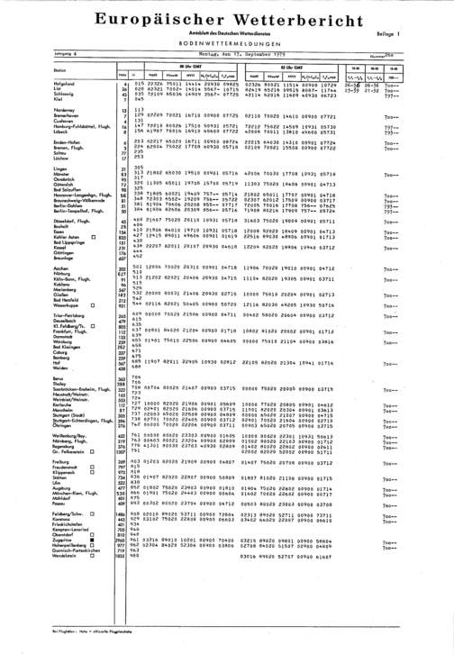 Europäischer Wetterbericht. Beilage 1, Bodenwettermeldungen. 1976-1994