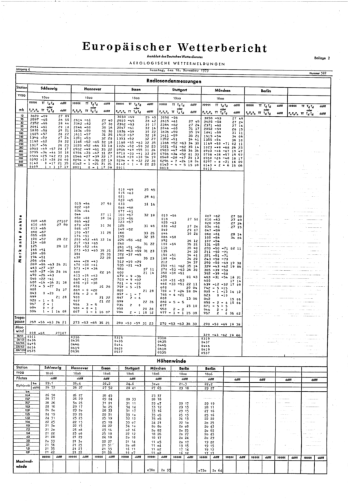Europäischer Wetterbericht. Beilage 1, Bodenwettermeldungen. 1976-1994