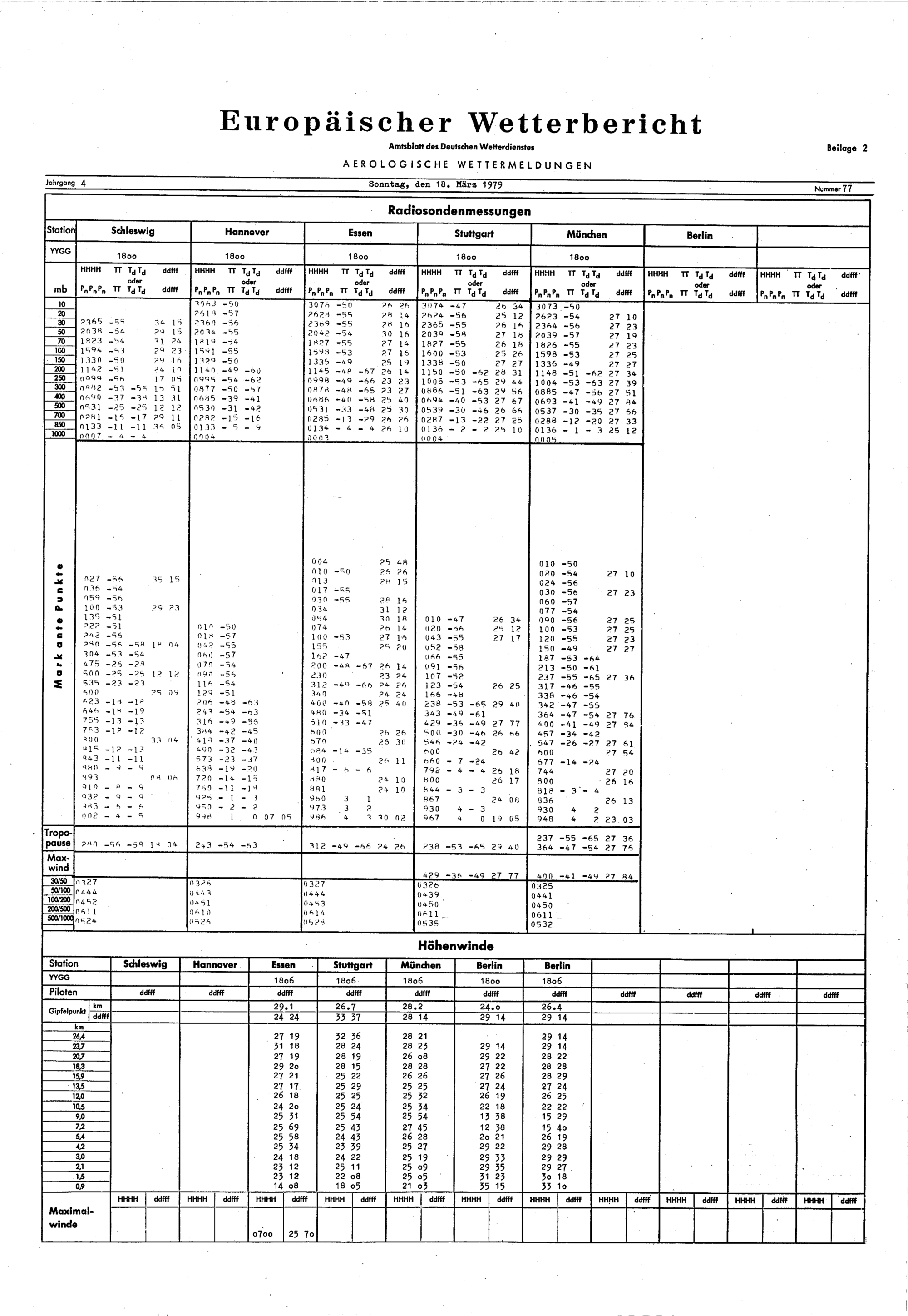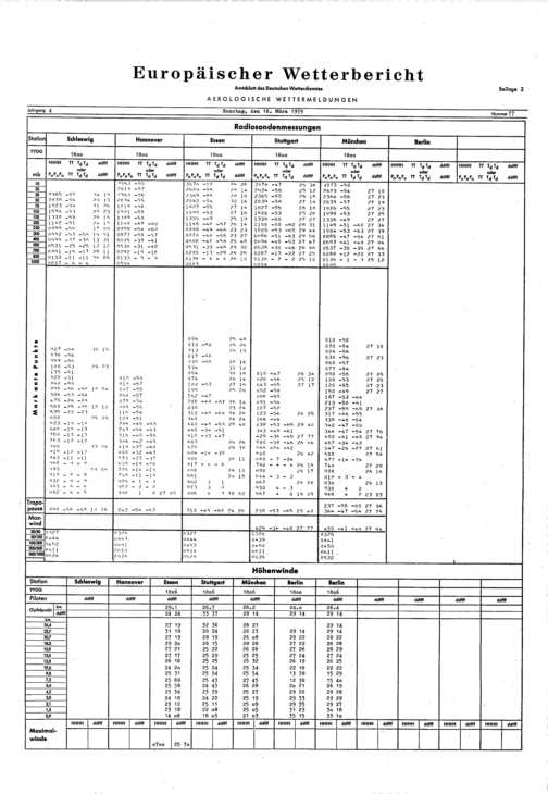Europäischer Wetterbericht. Beilage 1, Bodenwettermeldungen. 1976-1994