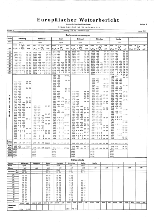 Europäischer Wetterbericht. Beilage 1, Bodenwettermeldungen. 1976-1994
