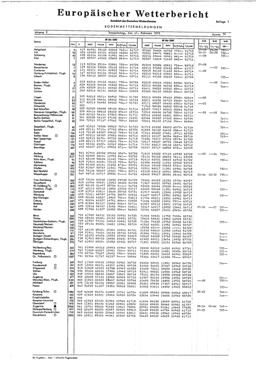 Europäischer Wetterbericht. Beilage 1, Bodenwettermeldungen. 1976-1994