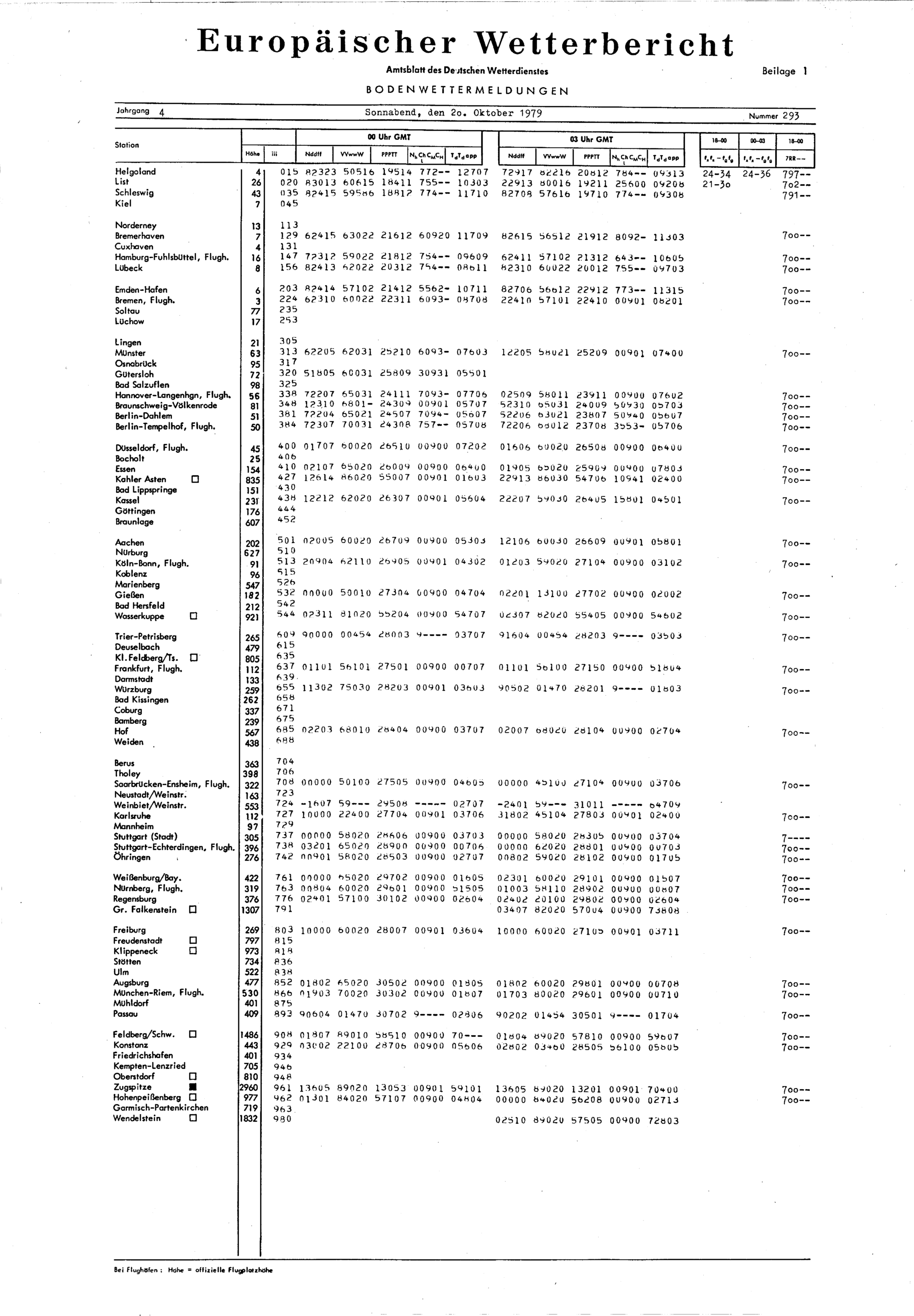 Europäischer Wetterbericht. Beilage 1, Bodenwettermeldungen. 1976-1994