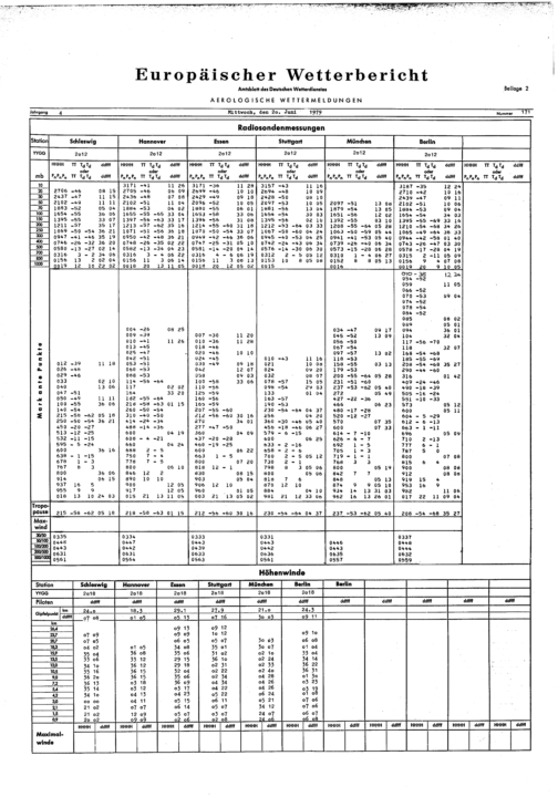 Europäischer Wetterbericht. Beilage 1, Bodenwettermeldungen. 1976-1994