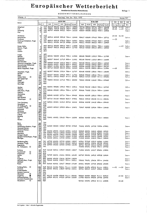 Europäischer Wetterbericht. Beilage 1, Bodenwettermeldungen. 1976-1994
