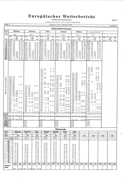 Europäischer Wetterbericht. Beilage 1, Bodenwettermeldungen. 1976-1994