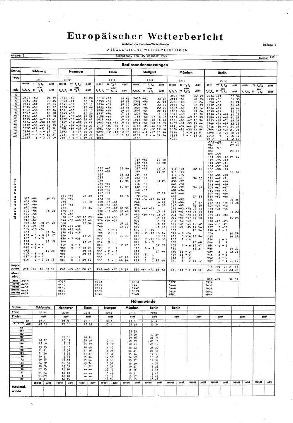 Europäischer Wetterbericht. Beilage 1, Bodenwettermeldungen. 1976-1994