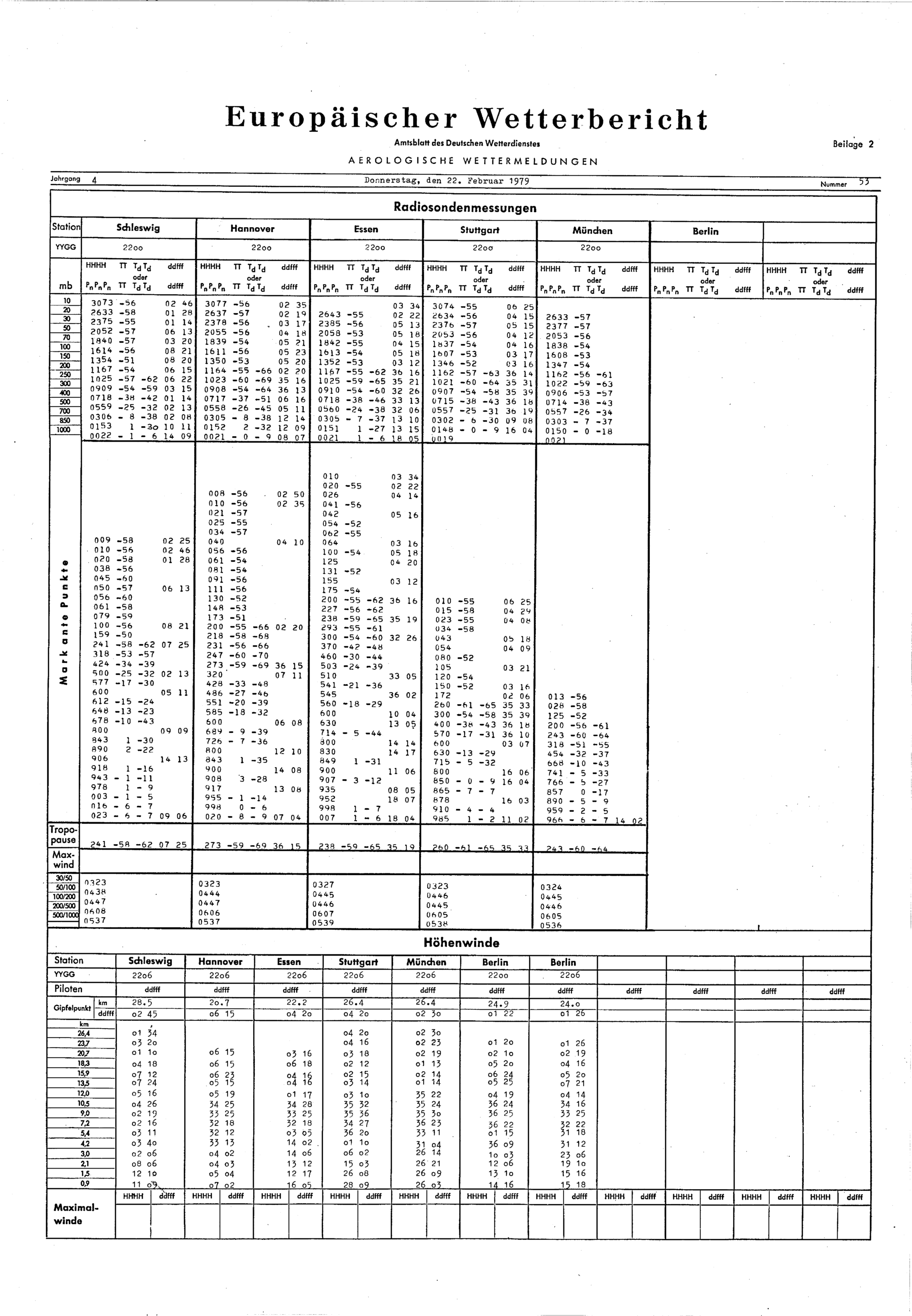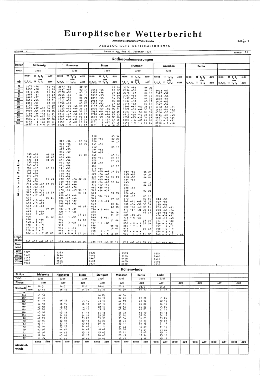 Europäischer Wetterbericht. Beilage 1, Bodenwettermeldungen. 1976-1994